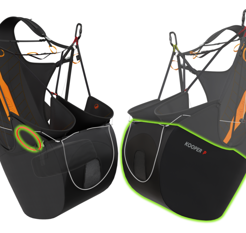 L’airbag del KOOPER P offre un’eccellente capacità di assorbimento degli urti, anche durante il decollo, grazie al suo sistema auto-gonfiante. Il paracadute di emergenza può essere integrato. È rapido da installare e facile da rimuovere grazie a una maniglia accessibile sul lato destro e a un contenitore integrato esclusivo di questo imbrago. Se si desidera aggiungere un secondo paracadute di emergenza, è possibile completare l’imbrago con il KASE P.