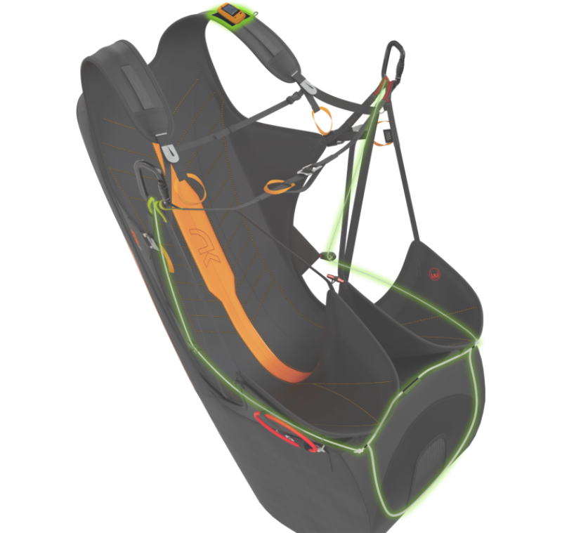 Ideale per hike & fly, volo termico e soaring, può essere utilizzato anche per lo speed flying. Leggero, ergonomico, compatto e sicuro, è dotato di airbag e di un vano per il paracadute di emergenza integrato.