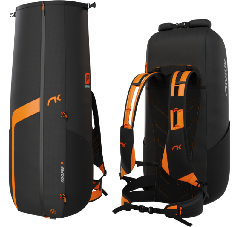 Il KOOPER P include la speed-bar ultraleggera a tre barre della serie P. Il comparto posteriore è spazioso e dotato di una zip con apertura completa per un accesso facile. Sullo spallaccio sinistro è presente un inserto in velcro per fissare gli strumenti di volo.