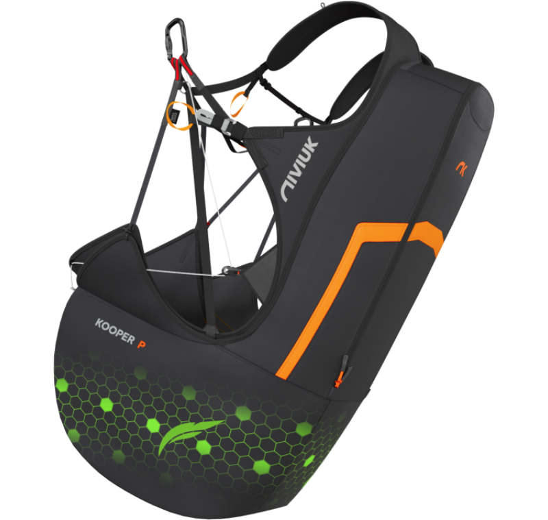 Il KOOPER P è perfetto per pratica a terra, soaring e persino lo speed flying, grazie al suo innovativo sistema di cosciali separati, che offre maggiore libertà di movimento e comfort quando si è in piedi.